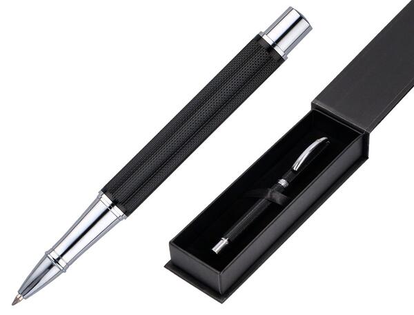 Roller noir en aluminium avec attributs argent. Agrafe bombée. Encre noire. Pointe 0,7 mm. Tracé 0,5 mm. Livré dans un élégant coffret cadeau assorti.