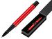 Roller rouge en aluminium. Attributs noir. Encre bleue. Pointe 0,7 mm. Tracé 0,5 mm. Livré avec un élégant coffret cadeau à fermeture magnétique.