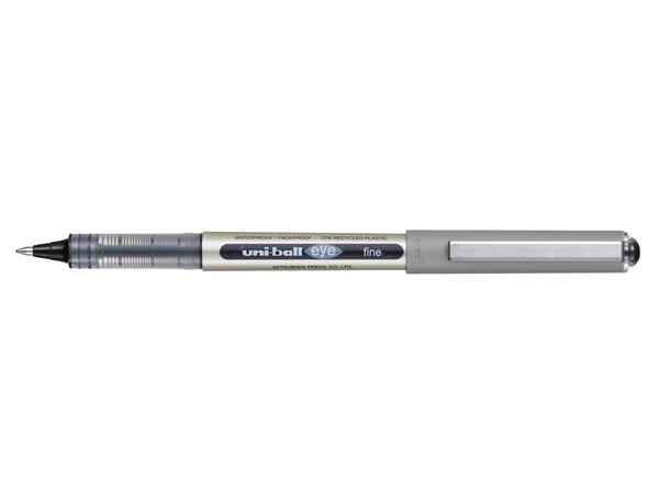 Roller encre liquide uni-ball EYE UB157E. FABRIQUE A PARTIR DE 70% DE MATERIAUX RECYCLES. Technologie uni-flow®: écriture propre et continue jusqu'à la dernière goutte. Glisse parfaite. Couleurs intenses et profondes. Idéal pour les amateurs de dessins, bullet journals et autres activités artistiques. Vos écrits 100% sécurisés grâce à l'encre infalsifiable SUPER INK® : résiste à l'eau et aux solvants, conserve son intensité dans le temps. Pointe en acier inoxydable