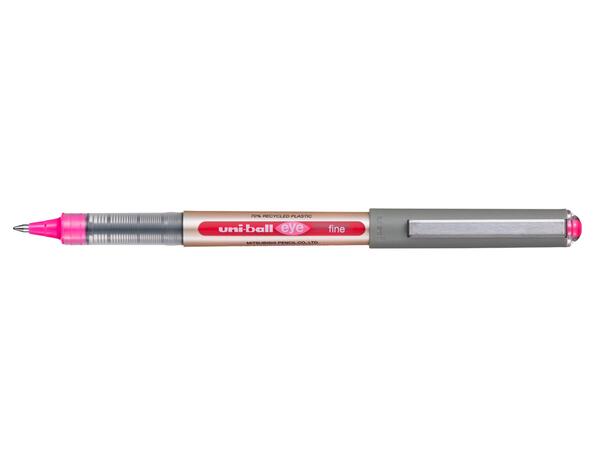 Roller encre liquide uni-ball EYE UB157E. FABRIQUE A PARTIR DE 70% DE MATERIAUX RECYCLES. Technologie uni-flow®: écriture propre et continue jusqu'à la dernière goutte. Glisse parfaite. Couleurs intenses et profondes. Idéal pour les amateurs de dessins, bullet journals et autres activités artistiques. Vos écrits 100% sécurisés grâce à l'encre infalsifiable SUPER INK® : résiste à l'eau et aux solvants, conserve son intensité dans le temps. Pointe en acier inoxydable