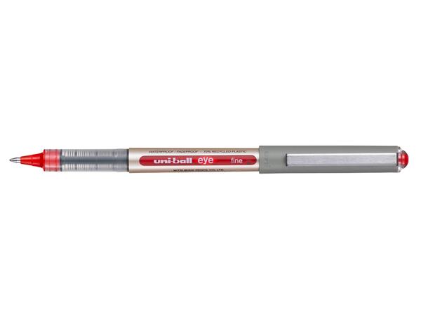 Roller encre liquide uni-ball EYE UB157E. FABRIQUE A PARTIR DE 70% DE MATERIAUX RECYCLES. Technologie uni-flow®: écriture propre et continue jusqu'à la dernière goutte. Glisse parfaite. Couleurs intenses et profondes. Idéal pour les amateurs de dessins, bullet journals et autres activités artistiques. Vos écrits 100% sécurisés grâce à l'encre infalsifiable SUPER INK® : résiste à l'eau et aux solvants, conserve son intensité dans le temps. Pointe en acier inoxydable