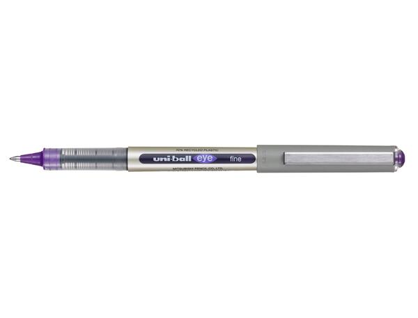 Roller encre liquide uni-ball EYE UB157E. FABRIQUE A PARTIR DE 70% DE MATERIAUX RECYCLES. Technologie uni-flow®: écriture propre et continue jusqu'à la dernière goutte. Glisse parfaite. Couleurs intenses et profondes. Idéal pour les amateurs de dessins, bullet journals et autres activités artistiques. Vos écrits 100% sécurisés grâce à l'encre infalsifiable SUPER INK® : résiste à l'eau et aux solvants, conserve son intensité dans le temps. Pointe en acier inoxydable