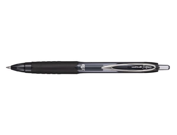 Rollers uni-ball SIGNO 207E FABRIQUE A PARTIR DE 72% DE MATERIAUX RECYCLES Douceur d'écriture et séchage ultra rapide ! Roller encre gel Super Ink : pigments inaltérables, permanent, résiste à l'eau et à la lumière. Luminosité des couleurs. Couleurs stables et durables. Longueur d'écriture optimisée. Ecriture inclinable à 45° sans gratter le papier. Pointe 0.7 mm, écriture moyenne. NOIR