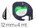 Ruban compatible avec l'étiqueteuse DYMO LetraTag. Support papier. Couleur d'impression noir, arrière-plans noir. Bonne relation qualité prix. Peut se coller sur une grande variété de surfaces. Largement utilisé au bureau, à la maison, à l'école, à l'hôpital, etc. Dimensions: 12 mm x 4 m.