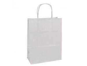 Sac en papier kraft très résistant avec 2 poignées torsadées naturelles, soufflets latéraux, à customiser avec peinture, feutres, gommettes'Dim. 16 x 8 x 21 cm - 100 g - Lot de 25 sacs blancs