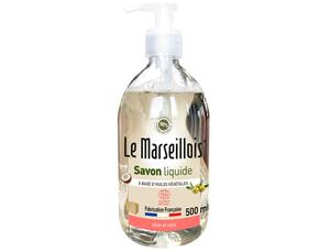 Savon liquide de Marseille aux extraits d'huile d'olive et de coco. - À base d'huiles végétales - Sans parfum, sans colorant - Hypoallergénique - 98% du total des ingrédients sont d'origine naturelle Facile d'utilisation, le savon de Marseille est idéal pour toute la famille, pour le corps comme pour le nettoyage des mains. Il lave et nourrit la peau tout en douceur, en un seul geste. Intrinsèquement riche en glycérine, il préserve l'équilibre des peaux les plus délicates. Ce savon à base d'huiles végétales révèle une odeur authentique de savon qui rappelle de doux souvenirs d'enfance. Saponifié à partir d'huiles d'olive et de Coprah, ce savon liquide moussant est formulé sans parfum ni colorant. Le savon liquide de Marseille est hypoallergénique, garantit une hygiène parfaite et naturelle et prévient de tous risques d'allergies cutanées, notamment en cas d'intolérance aux savons et bases lavantes de synthèse. Il est recommandé par les dermatologues pour un usage dans les