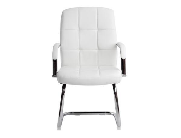 Siège visiteur avec dossier coutures en damier. Assise et dossier en mousse recouverts de simili cuir en PU (à l'avant) et en PVC (l'arrière). 2 pieds en métal chromé incurvés. Accoudoirs fixes en métal chromé avec manchettes en PU. Recommandé pour une utilisation journalière de 5h. Dimensions totales : largeur 610 mm x profondeur 680 mm x hauteur 1050 mm. Dimensions utiles : profondeur siège 490 mm x largeur 520 mm x hauteur dossier 560 mm x hauteur assise 480 mm. Poids maximum : 110 kg. Poids du siège : 12 kg.
