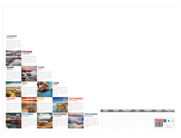 Bloc encollé de 25 feuilles. Fabriqué en papier recyclé. Grille 12 mois. Dimensions : 385 x 540 mm. Produit certifié PEFC.