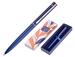 Stylo-bille corps bleu électrique en aluminium avec des attributs or rose. Encre bleue. Pointe 1 mm. Tracé 0,5 mm. Livré dans élégant coffret cadeau assorti.