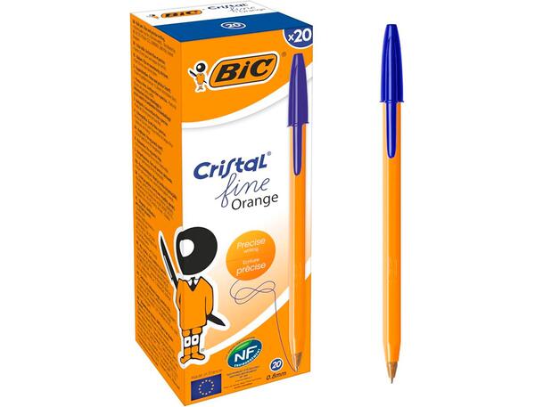 BIC Cristal Original Stylos-Bille - Value Pack 90+10 - Corps orange translucide - Embout et capuchon à la couleur de l'encre - Niveau d'encre visible - Pointe fine 0,8 mm - (bleu)Fabriqués en France avec un minimum de matière - Certifié NF Environnement.