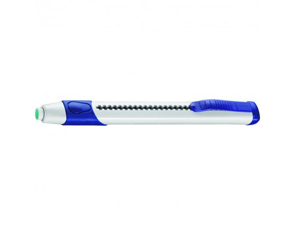 Avec gomme blanche en plastique, rechargeable. Utilisation de la gomme grâce au déplacement d'un clip, curseur autobloquant. Section triangulaire pour une prise en main facile. Le stylo gomme
