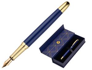 Stylo-plume bleu marine en aluminium avec des détails et attributs or. Encre bleue. Pointe M .Tracé 0,5 mm. Livré dans un élégant coffret cadeau décoré à l'intérieur et à fermeture magnétique.