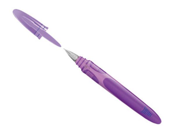 stylo-plume easy clic. Système de chargement latéral de la cartouche. Design attractif aux formes arrondies. Prise en main idéale grâce au grip caoutchouc. 4 coloris panachés assortis.