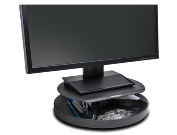 Support pour moniteur Spin 2 SmartFit®. Socle breveté et rotatif à 360 degrés permettant de garder les fournitures de bureau à portée de mains dans plusieurs compartiments. Possibilité de placer l'écran à un niveau confortable à hauteur des yeux, afin de réduire la fatigue du cou. Hauteur réglable de 57 à 83 mm en fonction de la couleur appropriée (à déterminer en suivant les instructions SmartFit®). Design robuste pouvant supporter des écrans plats (LCD) pesant jusqu'à 18 kg. Coloris noir. Dimensions : 80 x 334 x 334 mm.