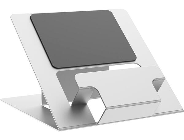"SUPPORT ordinateur portable HYLYFT. En aluminium ultra léger, pliable et portable. Ajustable en hauteur de 151 à 211 mm avec 6 réglages. Supporte un ordinateur de 18""" / 4 kg max. Livré avec une pochette de rangement. Dimensions : 238 x 246 x 6 mm."