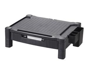 Le support pour moniteur/imprimante Q-Connect offre une solution polyvalente et efficace pour organiser votre espace de travail. Avec un design réglable sur deux hauteurs (10,3 et 13,3 cm), ce support fournit une plateforme solide et antidérapante, capable de soutenir des moniteurs ou imprimantes pesant jusqu'à 20 kg et mesurant jusqu'à 22 pouces. Équipé d'un tiroir avec deux diviseurs amovibles pour créer trois petits compartiments ou s'adapter aux papiers de format A4, ainsi que de deux organiseurs latéraux mobiles pour ranger de petits articles de bureau, ce support maximise l'efficacité et le confort dans votre espace de travail. Sa construction en HIPS (polystyrène à haute résistance aux impacts) garantit durabilité et solidité, tandis que son design élégant en noir ajoute une touche de style à tout espace professionnel.