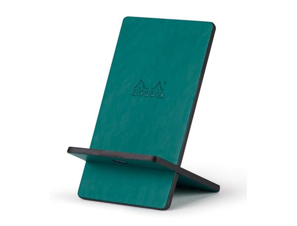 Extérieur en simili cuir italien avec logo rhodia embossé. Permet de garder votre téléphone en position verticale. Ultra-léger, facile à monter et à démonter. Ouverture adaptée au passage d'un câble, ainsi votre téléphone pourra être rechargé pendant l'utilisation. Dimensions : 80 x 80 x 135 mm.