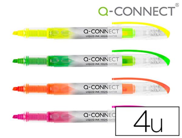 Surligneur à encre liquide et corps en plastique transparent, idéal pour visualiser le niveau d'encre. Encre liquide à base d'eau de couleur fluorescente. Séchage rapide. Bouchon avec clip. Pointe biseautée. Tracé de 1 à 5 mm. Durée de vie : 2 ans. Pochette de 4 unités.