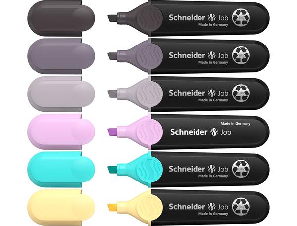 Découvrez ce lot de 6 surligneurs Schneider Job, conçus pour sublimer vos notes et documents avec précision et éclat. Dotés d'une pointe biseautée innovante, ils permettent de tracer des traits d'une largeur variable (1 à 5 mm) pour un surlignage adapté à chaque besoin, qu'il soit précis ou large. Chaque pochette contient six couleurs assorties, idéales pour organiser visuellement vos textes avec style et efficacité.