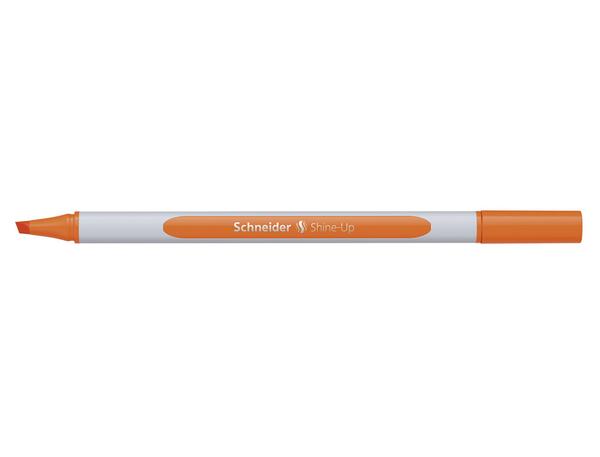 "Le surligneur Shine-Up permet de réaliser des traits de 1 + 4 mm. Couleur d'encre orange. Ce surligneur a sa place dans chaque trousse ou porte-stylo grâce à sa forme fine. Il apporte plus de joie dans le marquage et l'étude. Il est fabriqué dans le respect de l'environnement et des ressources et contient plus de 80 % de bio-plastique. Récompensé par l'éco-label le plus connu au monde, l'"""Ange Bleu""". Grâce aux deux épaisseurs de trait et à l'encre universelle brillante pour le papier normal, photocopie et fax, le Shine-Up peut être utilisé d'une manière polyvalente. Le corps triangulaire ergonomique réduit la sensation de fatigue."