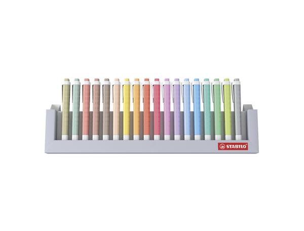 "Un pack idéal à (s') offrir de 18 STABILO swing cool Pastel et NatureCOLORS aux coloris doux et apaisants. Ce pack chevalet 100% carton allie design et praticité pour visualiser et ranger tous ses surligneurs. STABILO swing cool est le surligneur incontournable des écoliers et étudiants. En effet son corps fin format """stylo""" lui permet de se glisser facilement dans une trousse ou un sac et son clip s'accrochera facilement à un cahier ou une pochette. La pointe biseautée de STABILO swing cool offre un tracé de 1 et 4 mm pour surligner, souligner, encadrer de façon précise. Il est idéal pour mettre en valeur les informations essentielles de vos cours ou de vos fiches de révisions et surligner de petits textes. Parfait également pour ombrer, encadrer, décorer vos projets créatifs comme le lettering, le bullet journal... Fabriqué en Allemagne et doté d'une encre à base d'eau, il possède la technologie anti-dessèchement STABILO lui permettant de rester ouvert 4 heures sans sécher. Dispo"