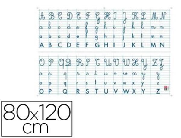 Tableau effaçable Alphabet Support souple pelliculé effaçable à sec, 5 'illets métal de suspension. Toutes les lettres de l'alphabet, majuscules, minuscules, cursives et d'imprimerie. Tableau découpable au centre pour présentation en frise. Format : 80 x 120 cm Poids : 280 g Vendu sous emballage carton individuel.