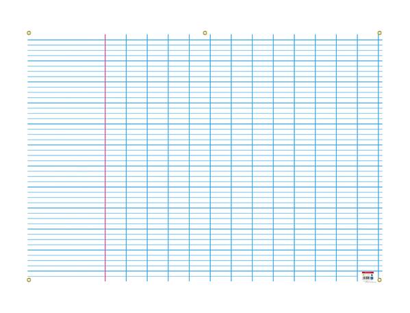 Tableau effaçable Seyes Support souple pelliculé effaçable à sec, 5 'illets métal de suspension. Grille seyes avec marge. Interlignes 2 cm Format : 98 x 138 cm Poids : 390 g Vendu sous emballage carton individuel.