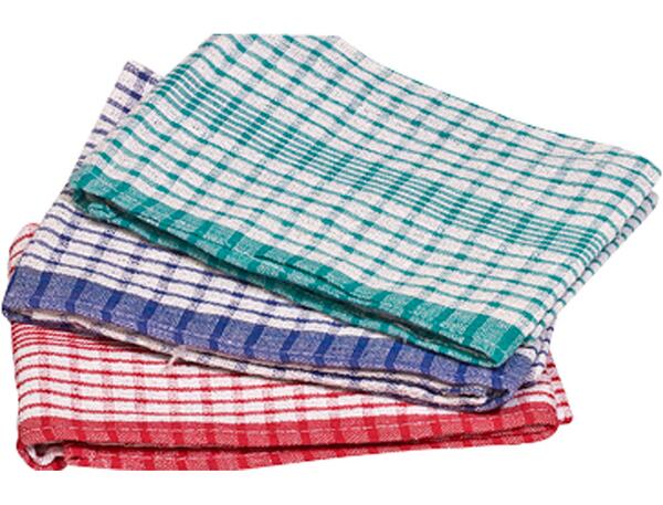 Torchon en coton 50 x 70cm avec bandes de couleur. Composition : 80% coton 20% polyester Utilisation : Essuyage mains Entretien : Lavable en machine à 60°C Les points forts : Produit économique