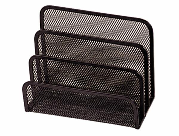 En maille métallique. Idéal pour stocker tout le nécessaire à courrier comme enveloppes et cartes. 3 compartiments. Disponible en 2 coloris. Dimensions : 175 x 140 x 80 mm.