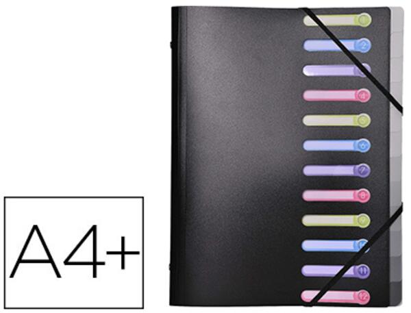 En polypropylène. Idéal pour classer ou transporter des documents perforés ou non. Fenêtres découpées dans la couverture et pochette A4 située en 2ème de couverture. 3 rabats en 3ème de couverture pour ranger des documents. Fermeture par élastiques. Dimensions : 245 x 320 mm. Coloris noir. un: 10.