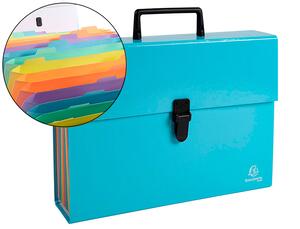 Conçu en carton rigide, épaisseur 2 mm, recouvert de papier couleur pelliculé. 18 compartiments. Fermeture par clip facile à ouvrir et refermer. Poignée pour faciliter le transport. Pour format A4. Coloris assortis aléatoires : bleu, corail, mauve ou vert. Dimensions : 320 x 240 mm. Produit certifié PEFC.