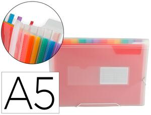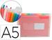 En polypropylène 7/10ème. 13 compartiments de couleur. Fermeture à élastique. 2 porte-cartes de visite. Coloris frosty transparents. Format: A5'.