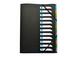 En polypropylène 5/10ème grain exclusif au toucher satiné, structuré résistant et anti-trace. Indexation sur fiche amovible. 3 rabats sur la 3ème de couverture pour le classement de documents. Onglets colorés pour une segmentation plus facile. Fermeture par élastique. Coloris noir. Dimensions : 250 x 322 mm.