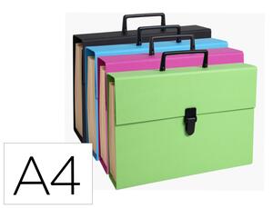 20 compartiments à soufflets pour format A4. Couverture papier rembordée. Fermeture par rabat et tuck. Avec poignée. Coloris assortis (livraison selon arrivage). Dim. (L x H) : 38,5 x 25 cm - La valisette