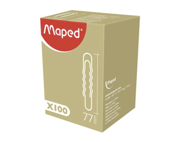 Trombones en métal. Boîte carton de 100 unités. 77 mm'.