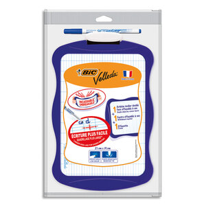 Ardoise effaçable à sec. Double façe : grands carreaux & unie. Nouveau quadrillage, 21 mm, pour faciliter l’écriture au marqueur effaçable.