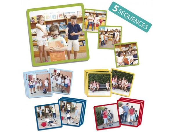 Lot de 5 séquences permettant de faire prendre conscience aux plus petits et de prévenir les situations de harcèlement en milieu scolaire avant qu'elles ne se produisent, mais aussi de doter les enfants de stratégies pour y faire face. Contenu : 20 cartes avec des images réelles
