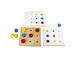 - Fonctionnement : Les enfants répondent aux questions sur les fiches en déplaçant des boutons colorés sur le support, puis retournent la fiche pour vérifier leurs réponses.