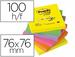 Bloc-notes post-it couleurs néon 76x76mm 100f repositionnables coloris jaune fluo