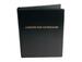Feuillets mobiles perforés, papier satiné 90 g/m² extra blanc. Les feuillets sont filmés à l'intérieur de l'étui protecteur. Produit certifié Ecolabel.