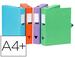 Personnalisation sur la 1ère de couverture et étiquette adhésive sur la tranche. 4 anneaux. Pour format A4. Coloris translucides aléatoires : incolore, bleu, turquoise, framboise, jaune et noir. Dimensions : 255 x 315 mm.