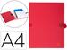 Chemise exacompta rabat en pied carton recouvert a4 dos extensible 13cm sangle boucle coloris rouge