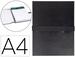 En papier toilé. 1 rabat en papier pour le bon maintien des documents. Fermeture par sangle à clip. Dos extensible jusqu'à 120 mm. Pour format A4. Dimensions : 240 x 320 mm. Coloris: Noir.